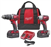 MILWAUKEE 18V CORDLESS COMBO KIT, INCLUDES 1/2" HAMMER DRILL & 1/4" IMPACT DRIVER